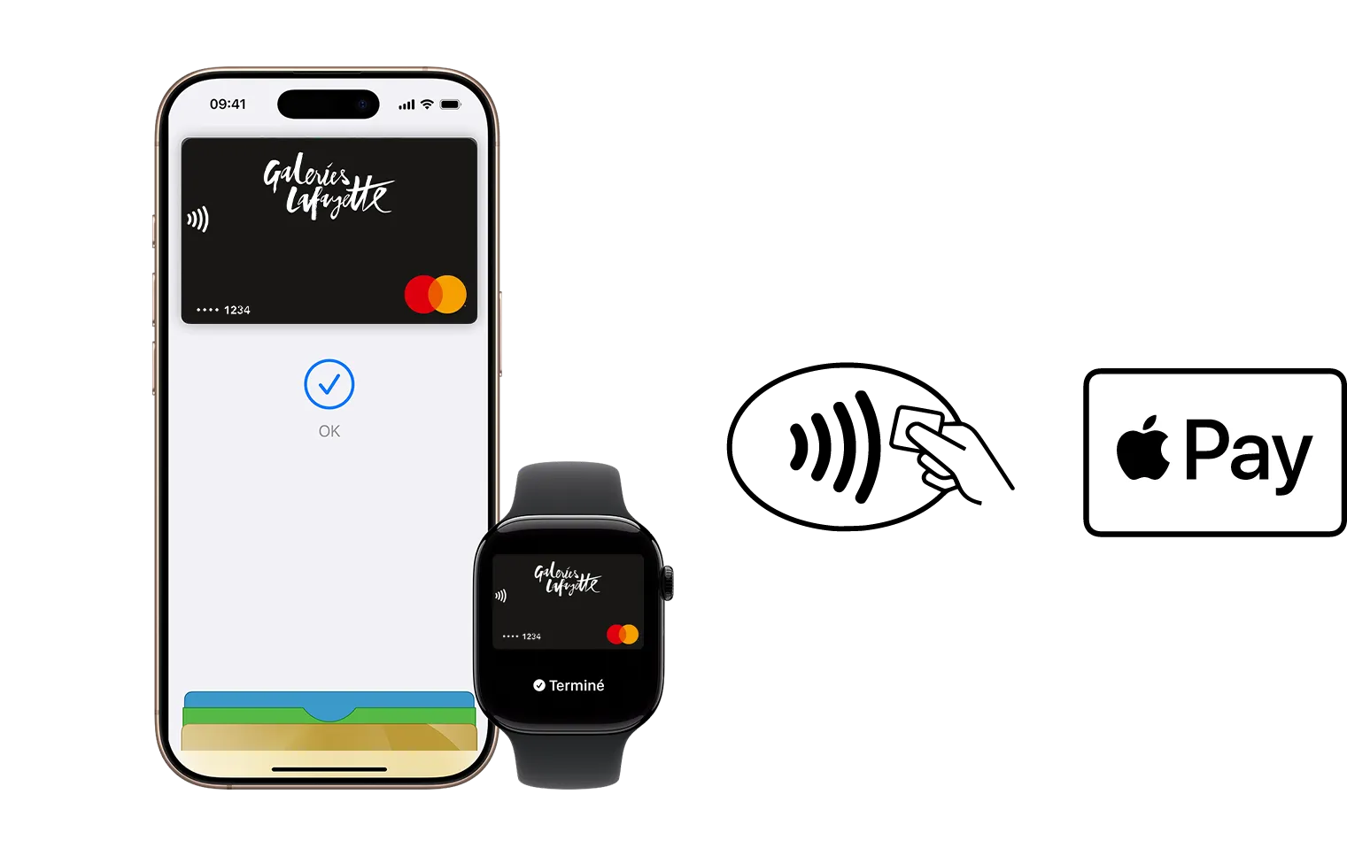 Apple Pay est un moyen simple, sûr et confidentiel d’utiliser votre carte Galeries Lafayettes Mastercard sur tous vos appareils Apple.
